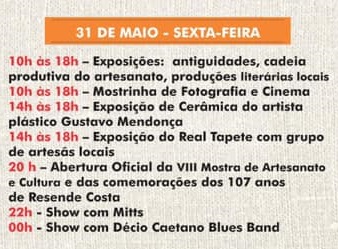 VII Mostra de Artesanato e Cultura . Programação 31 de Maio . 2019