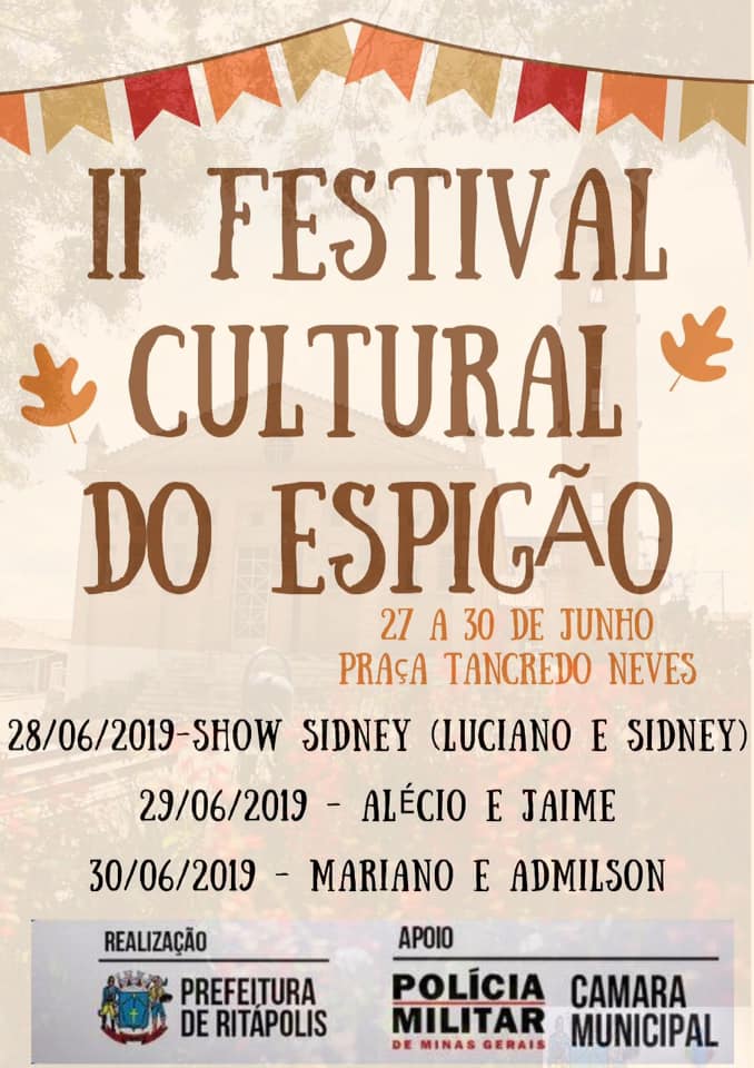 II Festival Cultural do Espigão . Praça Tancredo Neves . De 27 a 30 de Junho . 2019