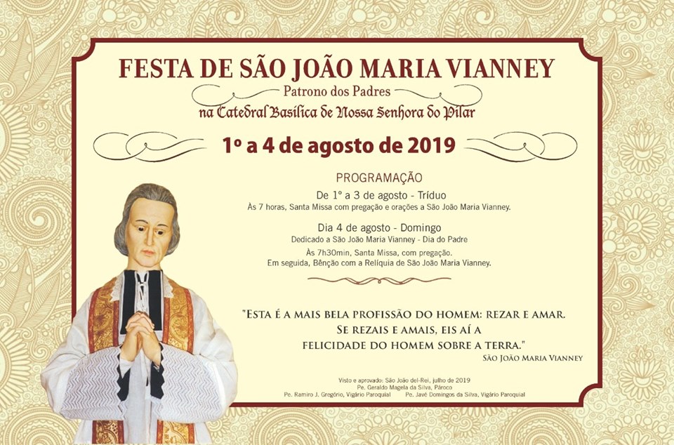 Festa de São José Maria Vianney . Catedral Basílica de Nsra do Pilar . De 01 a 04 de agosto . 2019.
