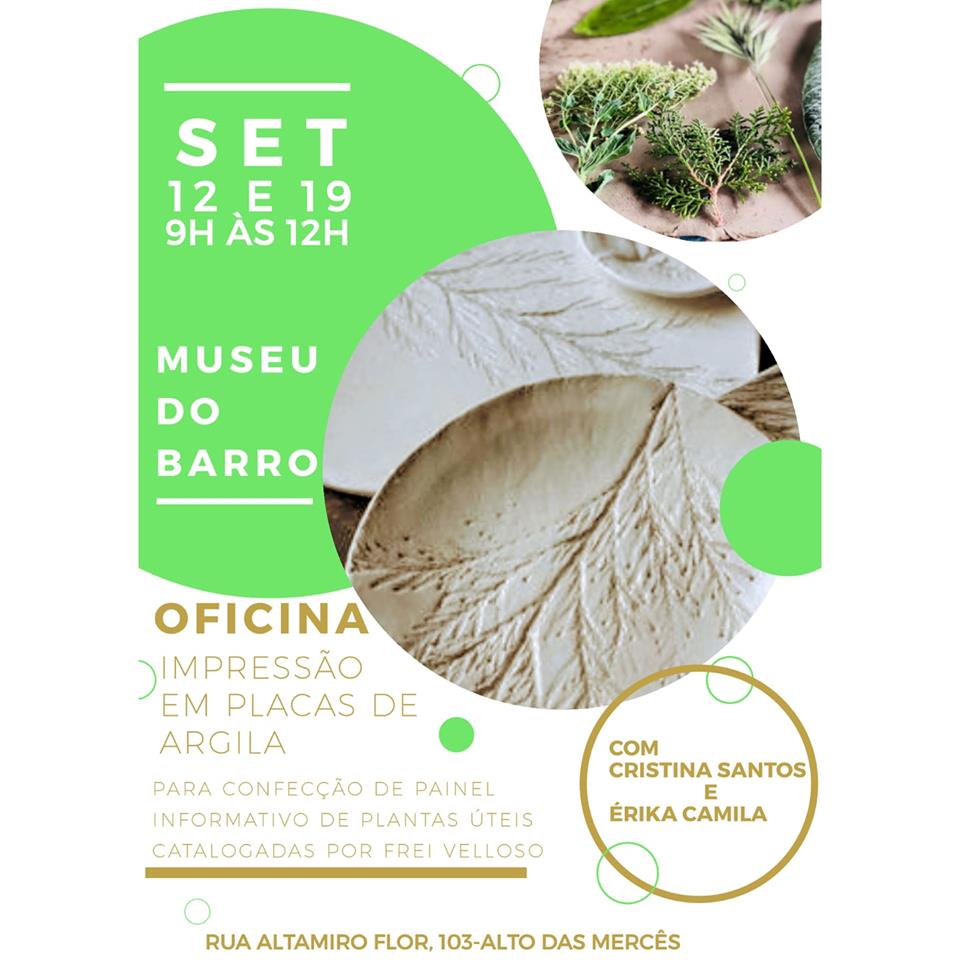 Oficina "Impressão em placas de Argila" . Museu do Barro . Rua Altamiro Flor - Alto das Mercês . Dias 12 e 19 de setembro . 2019 .