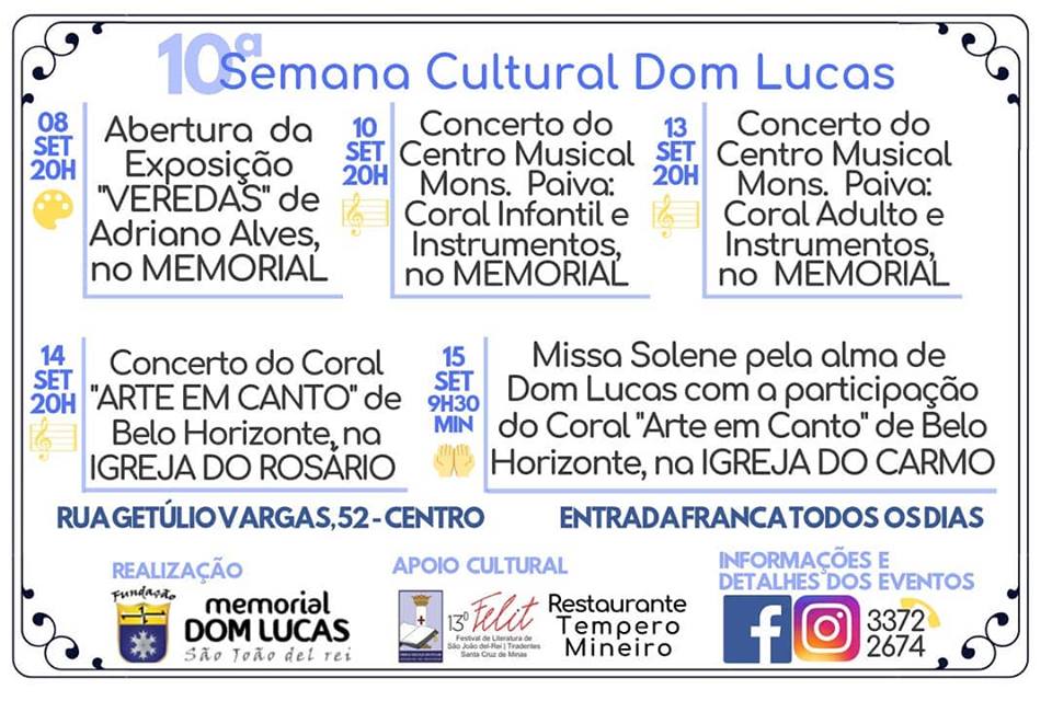 10ª Semana de Dom Lucas . Memorial Dom Lucas Moreira Neves . Programação completa de 08 a 15 de setembro . 2019