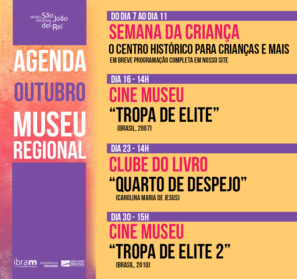 Semana da Criança . Museu Regional de SJDR . Programação de 07 de Outubro a 11 de Outubro . 2019