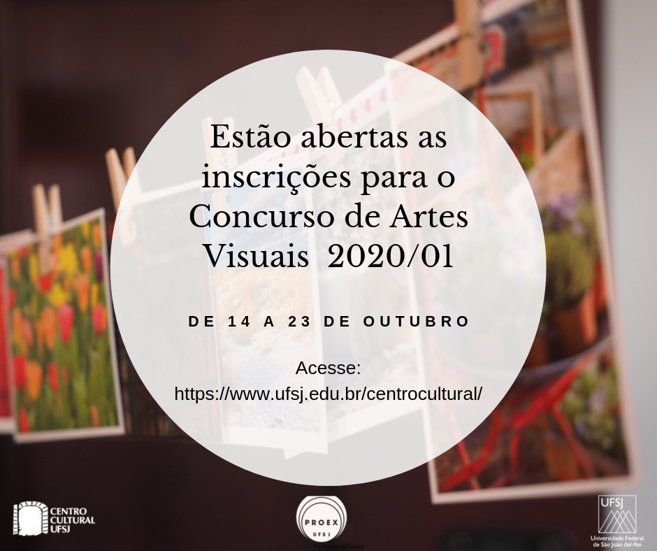 Inscrições para Concurso de Artes Visuais 2020/1 . Centro Cultural da UFSJ . De 14 a 23 de outubro . 2019.