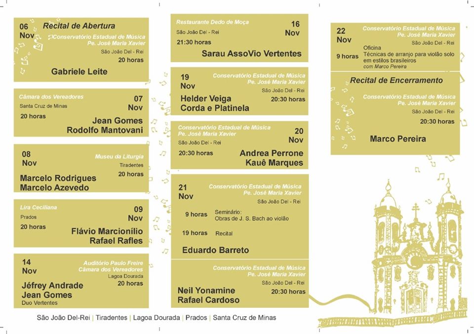 III Circuito de Violão das Vertentes . Programação completa de 06 a 22 de novembro . 2019