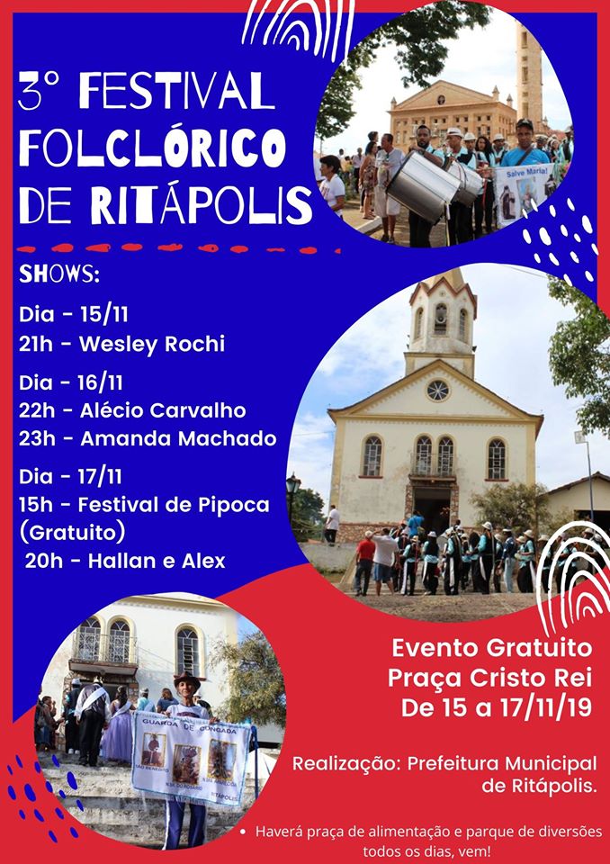 3º Festival Folclórico de Ritápolis . Praça Cristo Rei . De 15 a 17 de novembro . 2019
