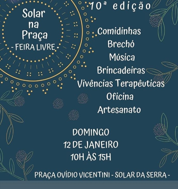 10° Edição "Solar na Praça- Feira Livre . Praça Ovídeo Vicentini - Solar da Serra . 2020