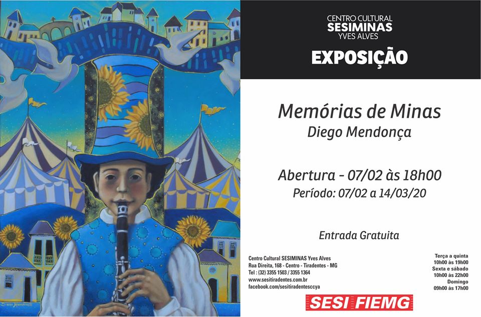Exposição "Memórias de Minas" Diego Mendonça . Centro Cultural SesiMinas Yves Alves . De 07 a 14 de Fevereiro . 2020