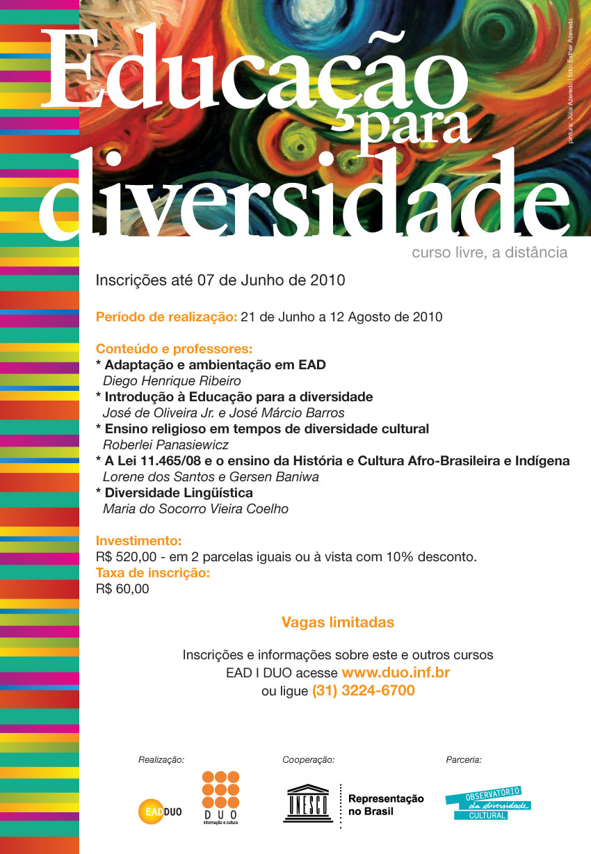 Educação para Diversidade . Curso livre à distância . Inscrições até 07 de junho