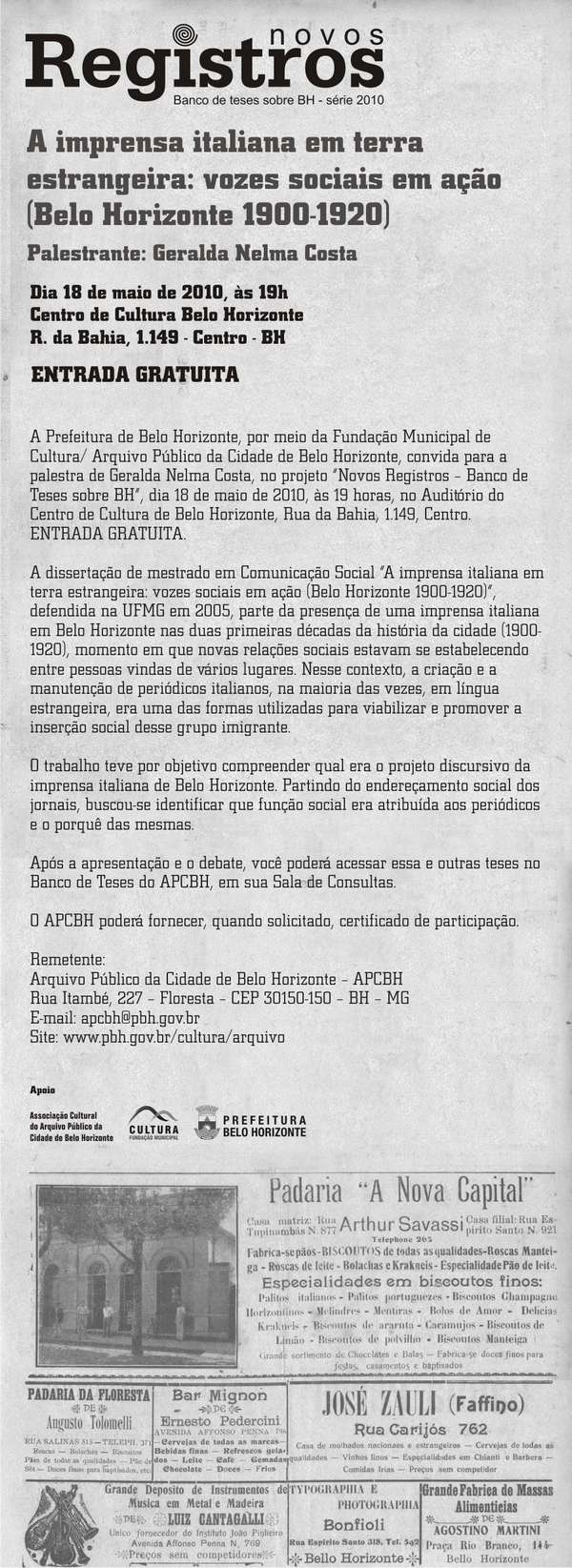 Palestra . A imprensa italiana em terra estrangeira: vozes sociais em ação