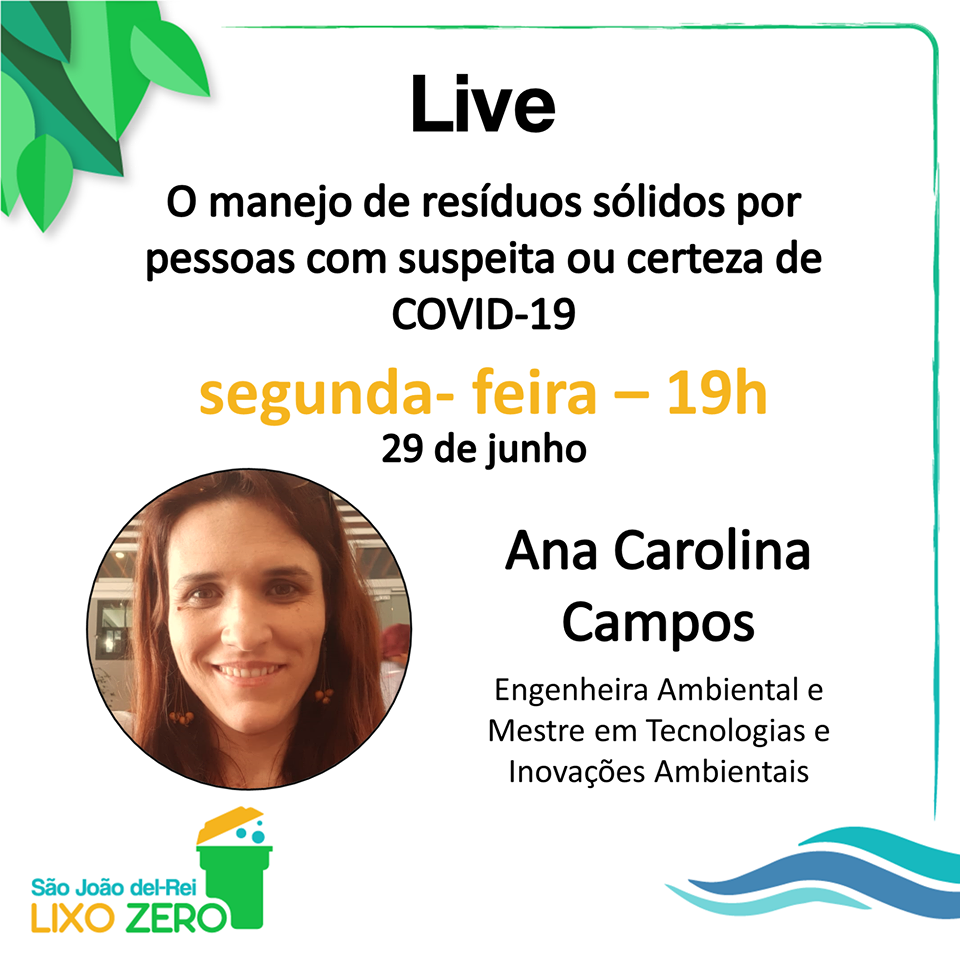 Live "O manejo de resíduos sólidos por pessoas com suspeitas ou certeza de Covid 19" . Ana Carolina Campos . São João del-Rei Lixo Zero . 2020.