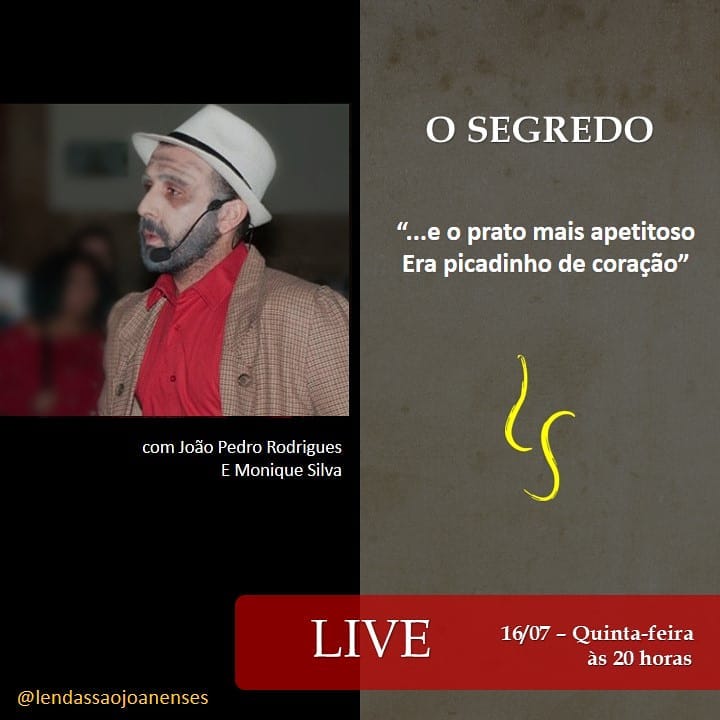 Live "O Segredo: ... e o prato mais apetitoso era o picadinho de coração" com João Pedro Rodrigues e Monique Silva . Instagram Lendas São Joanenses . 2020