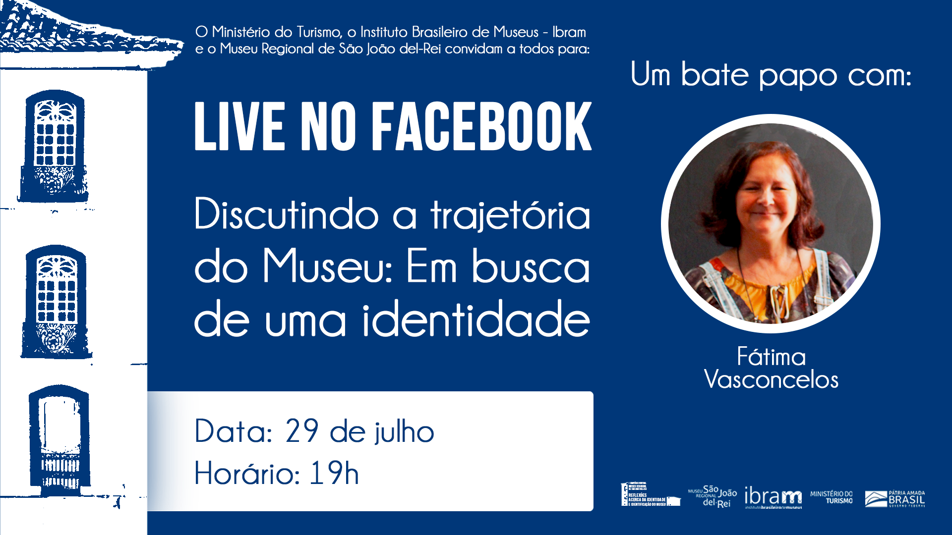 Live "Discutindo a trajetória do museu: em busca de uma identidade" com Fátima Vasconcelos . Facebook Museu Regional de SJDR . 2020