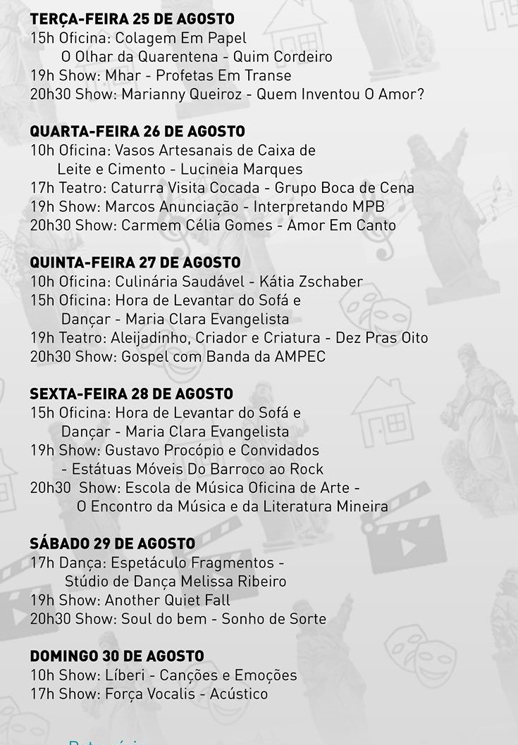 XXV Festival de Inverno de Congonhas . De 14 a 30 de agosto . Facebook Prefeitura de Congonhas . 2020