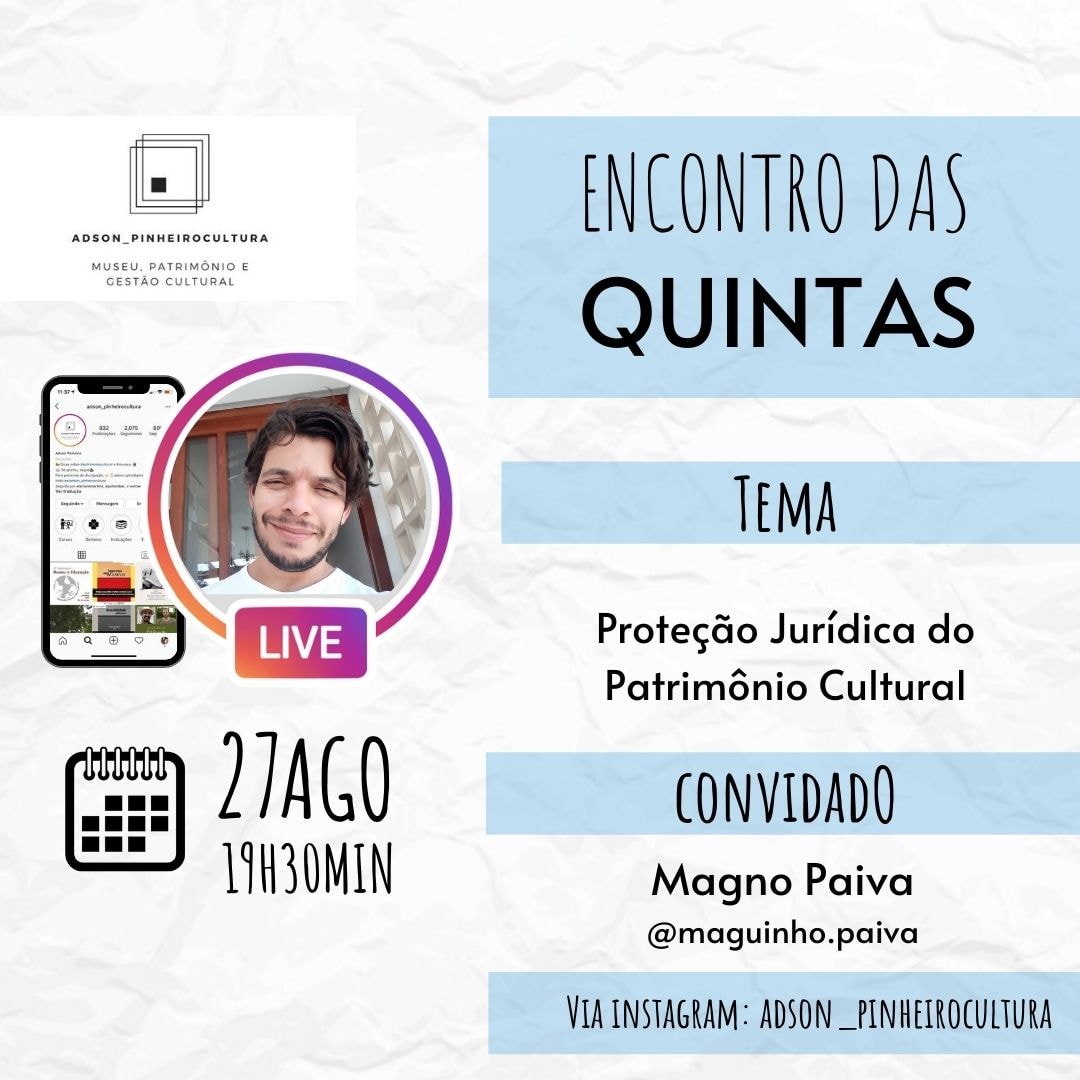 Live "Encontro das quintas" . Proteção Jurídica do Patrimônio Cultural com Magno Paiva . Ao vivo pelo Instagram . 2020