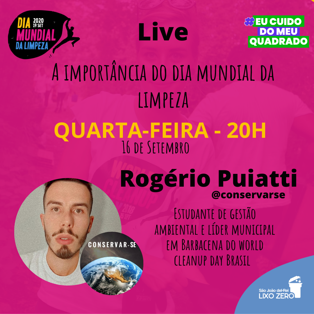 Live "A importância do Dia Mundial da Limpeza com Rogério Puiatti" . São João del-Rei Lixo Zero . Ao vivo pelo Instagram . 2020