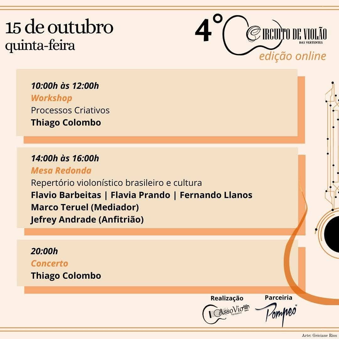 4º Circuito de Violão das Vertentes . Assovio Vertentes . Edição online . Programação completa de 12 a 16 de outubro . Ao vivo pelo Youtube . 2020