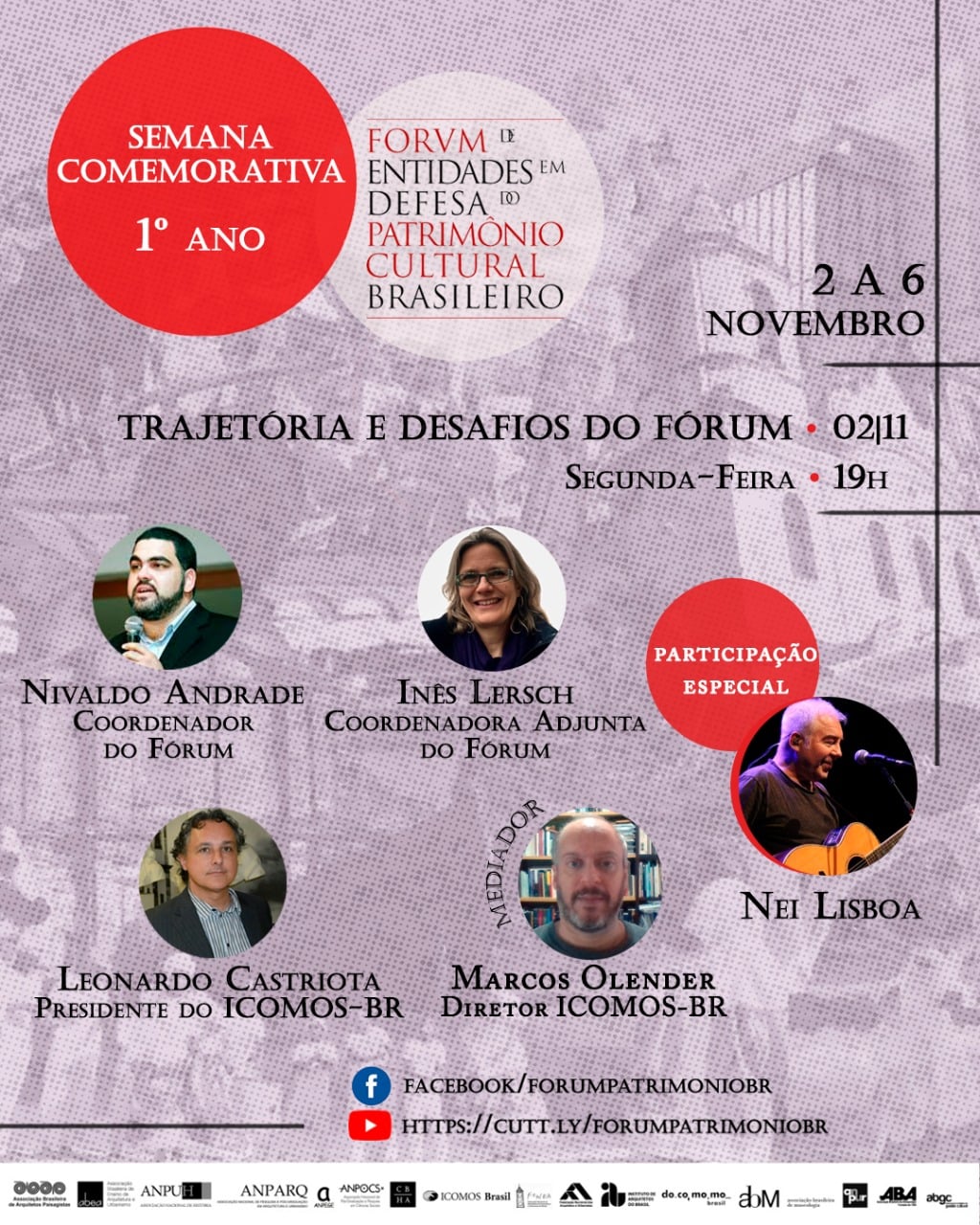 Semana Comemorativa " Fórum de Entidades em Defesa do Patrimônio Cultural Brasileiro" . Programação 02 de novembro . Ao vivo pelo Youtube . 2020.