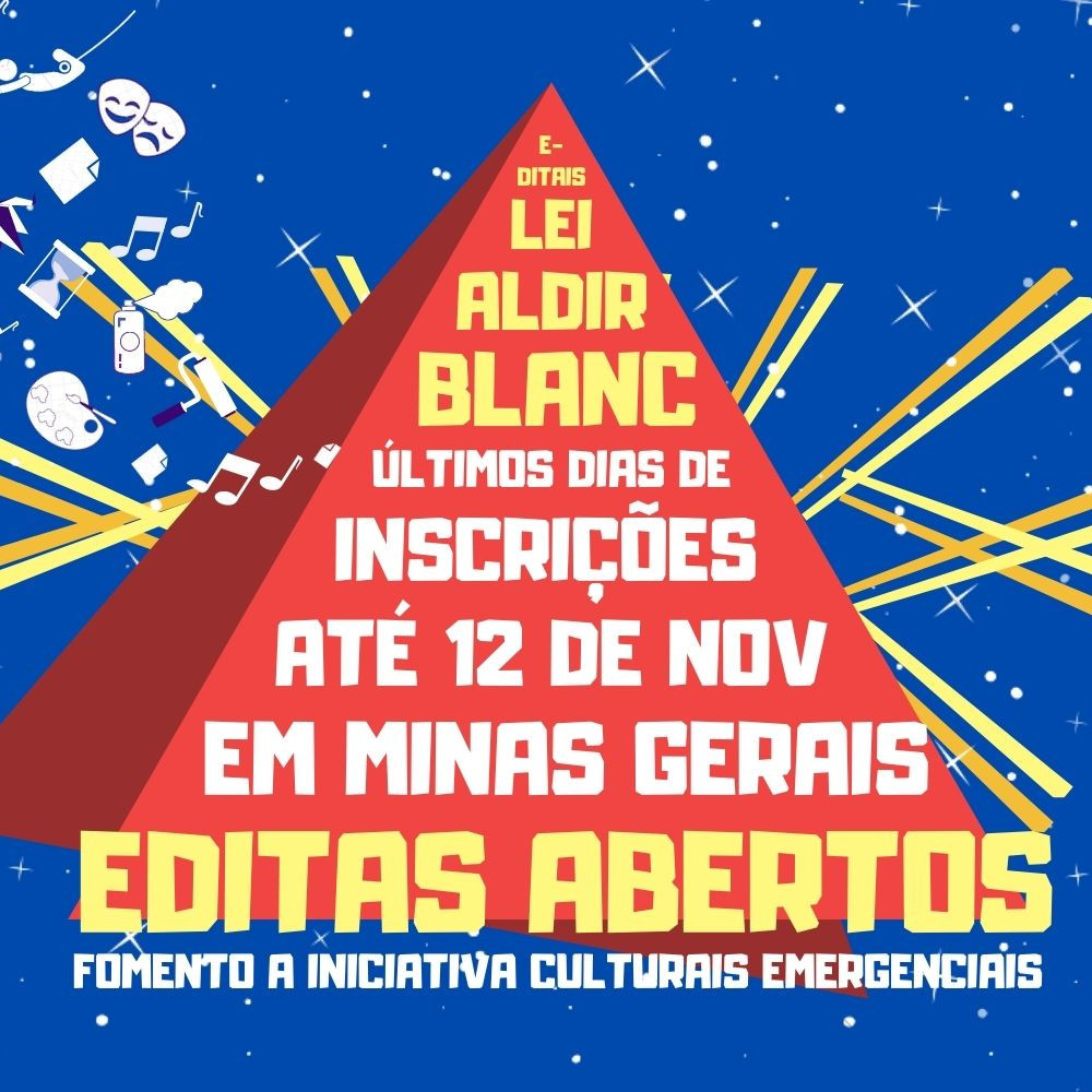 No dia 20 de outubro, o site da Secretaria de Estado de Cultura e Turismo de Minas Gerais, http://secult.mg.gov.br, publicou uma lista reunindo uma diversidade de editais abertos no estado de Minas com inscrições abertas até 12 de novembro.