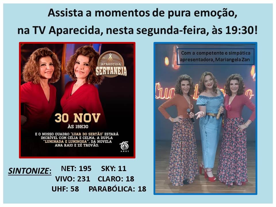 Live e Bate papo com Célia e Celma no Programa "Aparecida Sertaneja" . TV Aparecida . Ao vivo pela TV Aparecida e You Tube . 2020