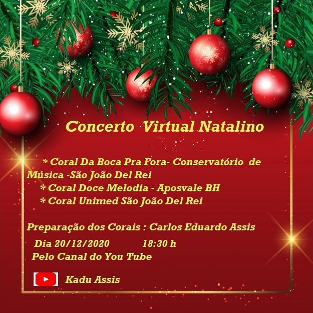 Concerto Virtual Natalino . Coral da Boca Pra Fora (CEM SJDR), Coral Doce Melodia (Aposvale BH), Coral Unimed SJDR . Ao vivo pelo You Tube . 2020