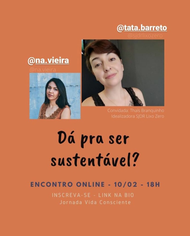 Encontro online: "Dá pra ser sustentável?" . Jornada Vida Consciente . Instragram . 2021