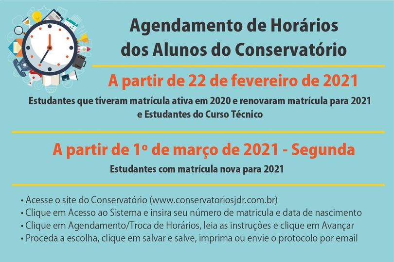 Agendamento de Horários dos Alunos do Conservatório . CEM . 2021
