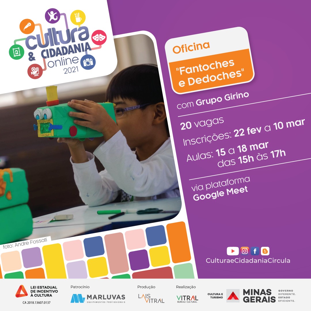 Cultura & Cidadania . Oficina "Fantoches e Dedoches" . Inscrições de 22 fevereiro a 10 março . 2021