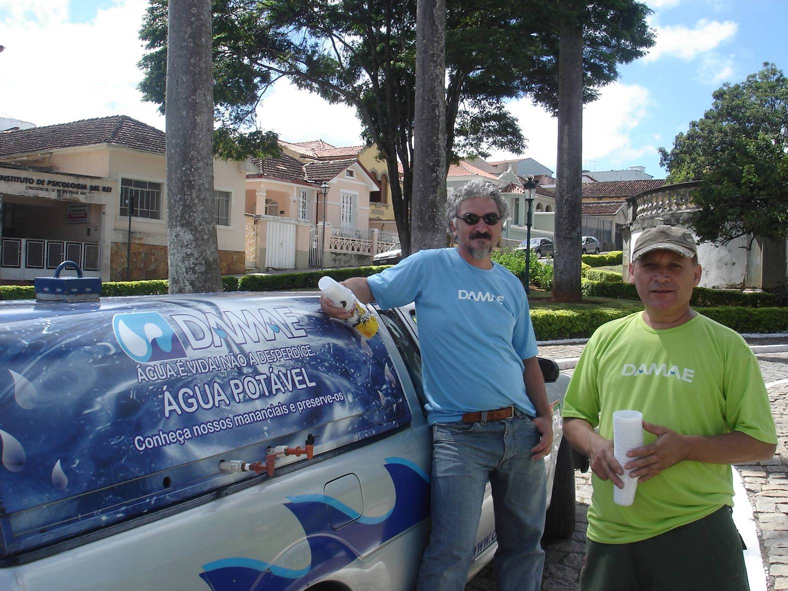 Apoio DAMAE . Distribuição de água potável para os participantes da confecção dos tapetes