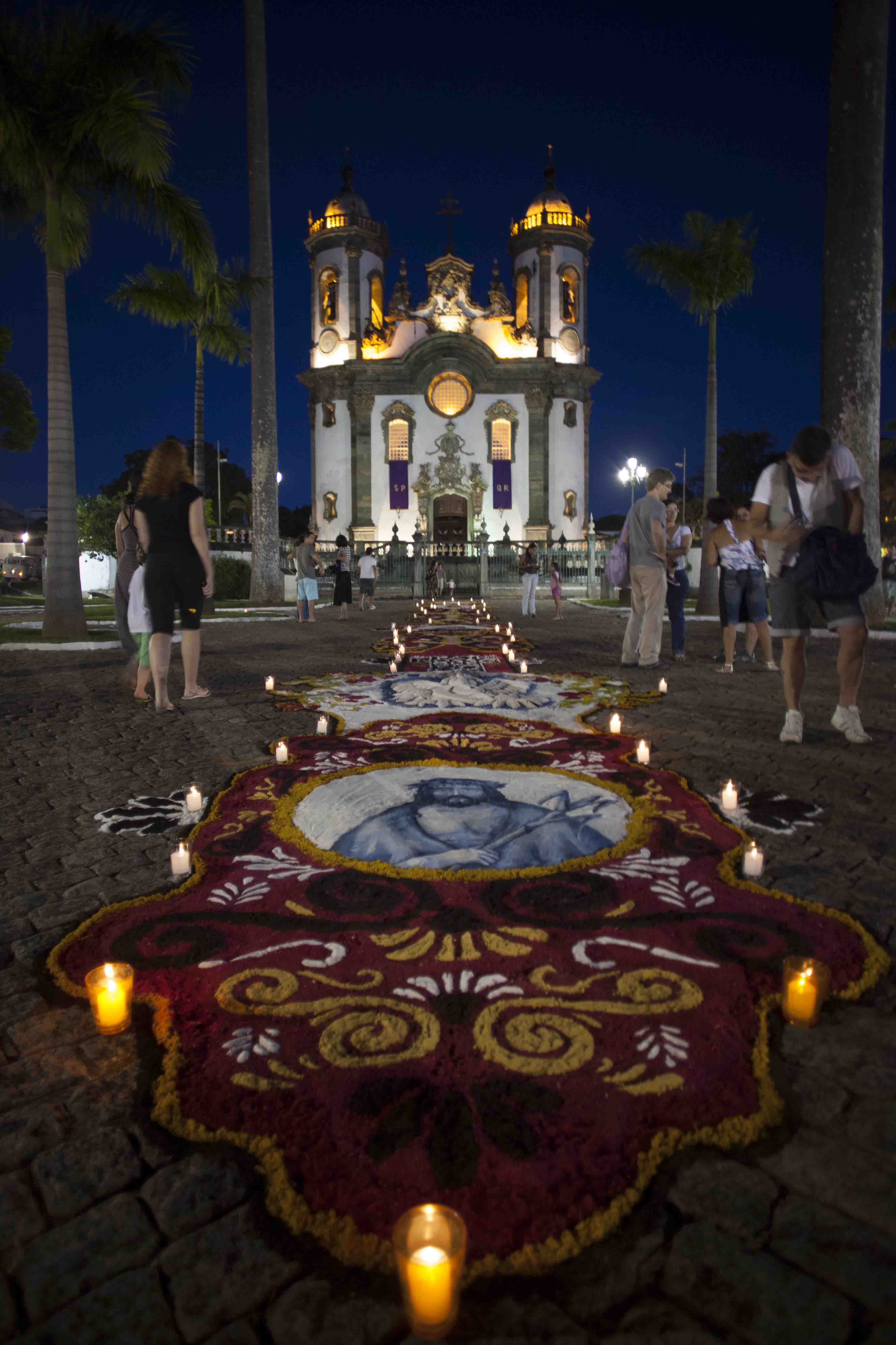 Na Semana Santa são confeccionados lindíssimos Tapetes de Rua também no Largo do Rosário, pela Oficina Artes da Terra; no Largo do Carmo, pelo Grupo Arte de Rua; no Bairro Senhor dos Montes, pelo Grupo de Jovens e em outros locais da cidade. Crianças, artistas, grupos diversos, comunidade se unem em torno desse objetivo comum e aos poucos, serragens, terra, flores naturais, folhas, sementes e areias pigmentadas de diversas cores, transformam-se em verdadeiras obras de arte.