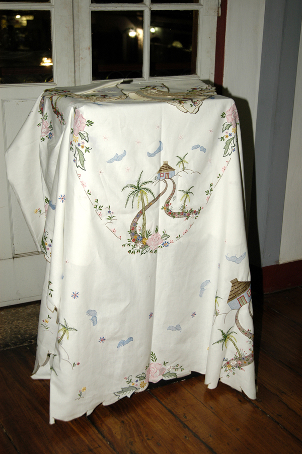 Diversos trabalhos em linha e tecidos que fazem parte da tradição local, raros acervos caprichosamente guardados, foram disponibilizados para esta mostra.