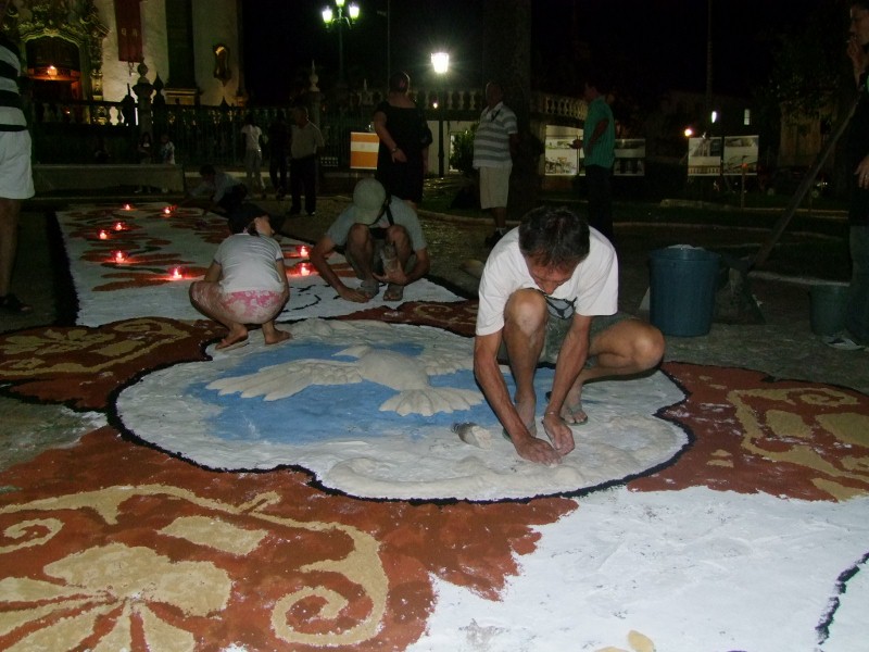 Confecção e Oficina Viva de Tapetes de Rua/Flores . Grupo Lendas São-joanenses