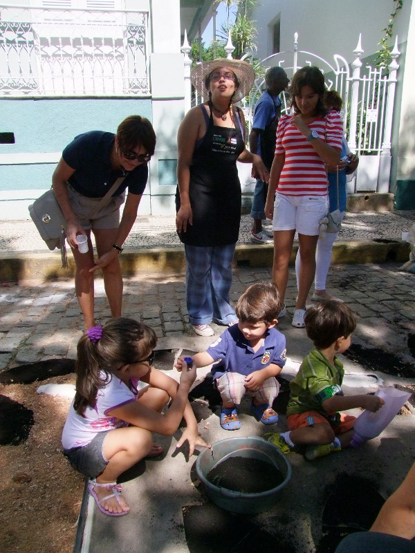 Oficina Viva de Tapete de Rua no Largo São Francisco para crianças . Grupo Calanquê
