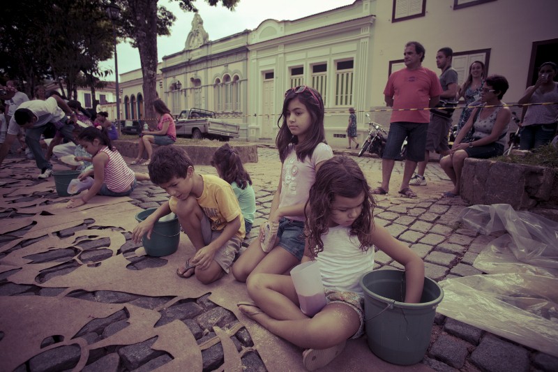 Oficina viva e confecção de Tapetes de Rua/Flores para crianças . Grupo Calanquê