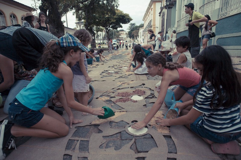 Oficina viva e confecção de Tapetes de Rua/Flores para crianças . Grupo Calanquê