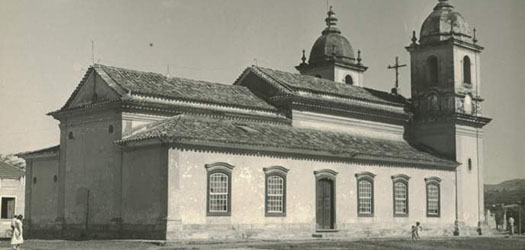 Rua Getúlio Vargas. Ao fundo a Igreja de Nossa Senhora do Carmo (Foto atual)