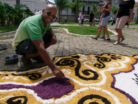 Confecção e Oficina Viva de Tapete de Rua na Rua Balbino da Cunha