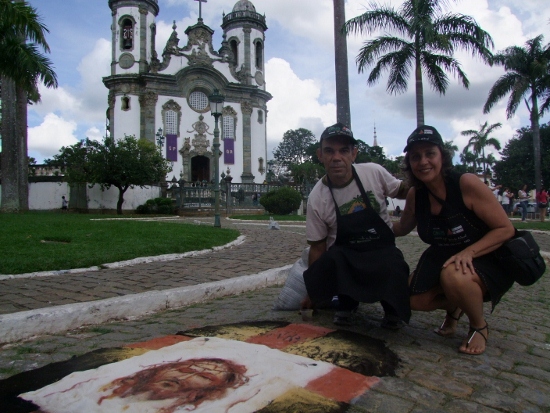 Igor Sandin, coordenador do Grupo Arte pelo Monte (Tapete de Rua da Praça Senhor do Monte) e Carlos Luiz Valin, integrante da equipe da Escola Caminho do Sol (Tapete de Rua da Rua Ribeiro Bastos)