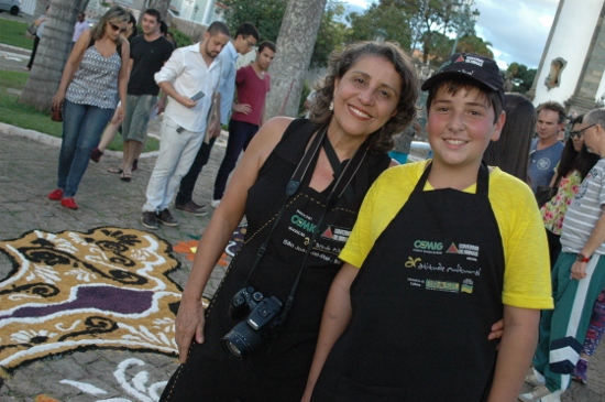 Igor Sandin, coordenador do Grupo Arte pelo Monte (Tapete de Rua da Praça Senhor do Monte) e Carlos Luiz Valin, integrante da equipe da Escola Caminho do Sol (Tapete de Rua da Rua Ribeiro Bastos)