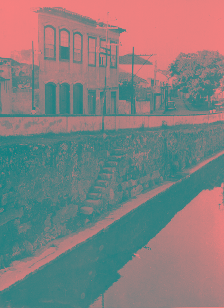 Janeiro de 1950. Minha mãe em uma ponte sobre o Córrego do Segredo. Ao fundo a Santa Casa. O córrego foi canalizado e a ponte não existe mais.