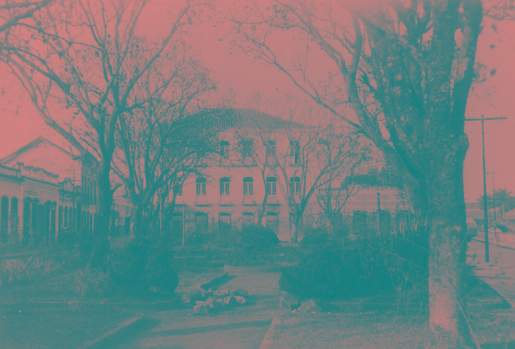 Janeiro de 1950. Minha mãe em uma ponte sobre o Córrego do Segredo. Ao fundo a Santa Casa. O córrego foi canalizado e a ponte não existe mais.