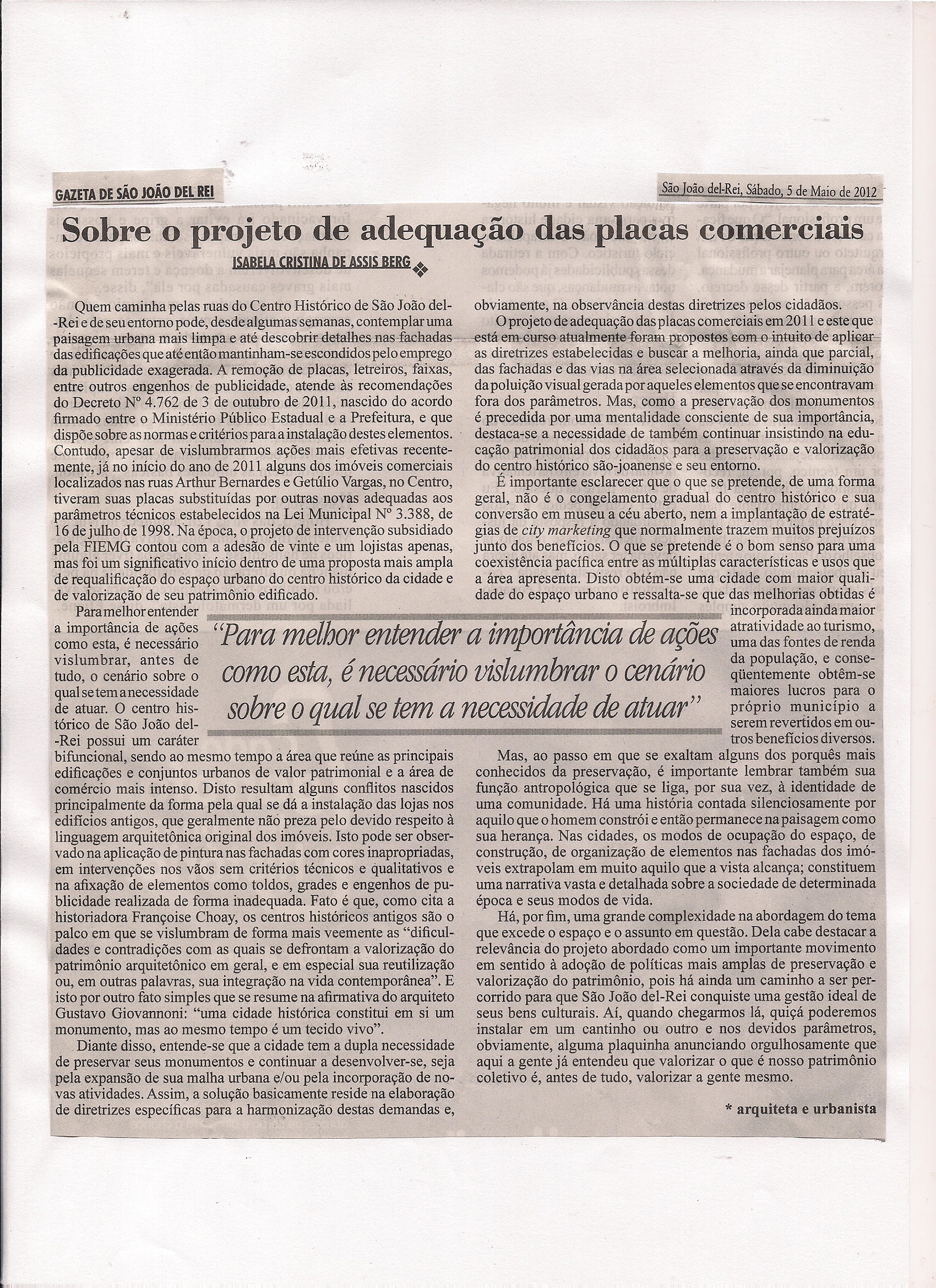 Fonte: Gazeta de São Joãodel-Rei em 5 de Maio de 2012