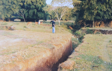 Primeira obra de canalização do esgoto do Ribeiro Santo Antônio, com manilhas de cerâmica, Tiradentes, década de 1990. Fotografia: Luiz Cruz.