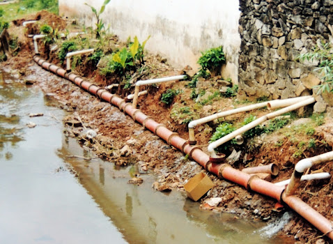Com a tubulação subdimensionada, a execução inadequada, as águas das chuvas deixaram tudo danificado. Então, ocorreu, mais uma obra; na terceira, utilizaram tubos de PVC branco, também impróprio e logo ficou avariado.