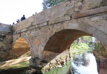 Aspecto da Ponte de Pedra, com vegetação arbustiva entre seus blocos rochosos, antes da obra de restauração. Fotografia: Luiz Cruz, 2013.