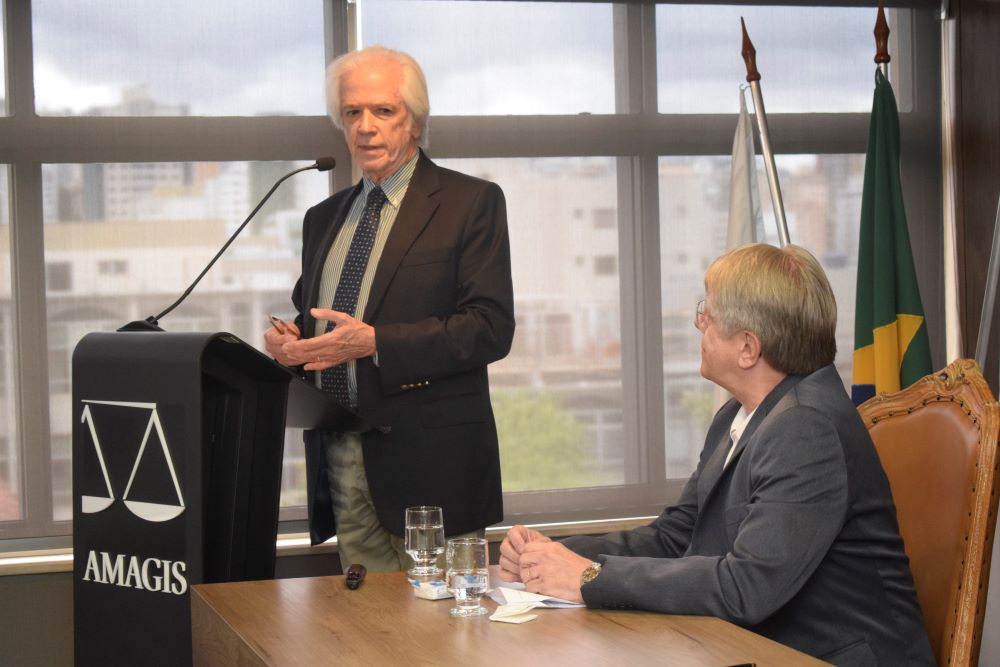 Na manhã desta sexta-feira, 10 de maio, a sede da Amagis foi palco da palestra “A Comarca do Rio das Mortes e o Ouvidor Geral Cypriano Joseph da Rocha”, proferida pelo juiz Auro Aparecido Maia de Andrade, com participação do advogado e escritor português António Andresen Guimarães, autor do livro “Cypriano Joseph da Rocha: relato de uma vida entre Portugal e o Brasil na Idade do Ouro”.