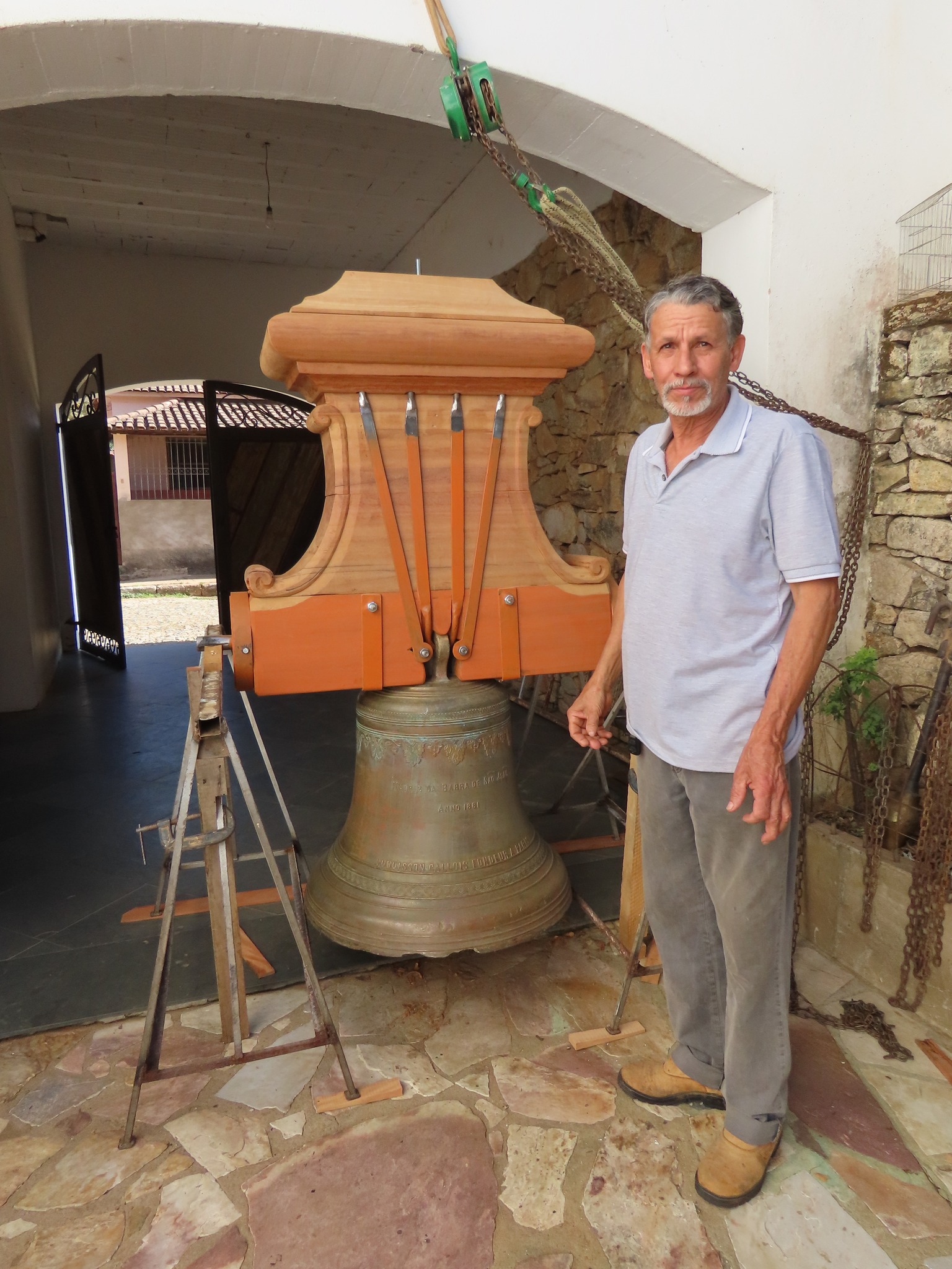 A Oficina de Restauração de Sinos do Zé da Lilina fica no Bairro Cascalho, em Tiradentes. Atualmente, ele restaura um dos sinos da Matriz da Barra de São João, município da mesorregião do Norte Fluminense, no estado do Rio de Janeiro. É um sino magnífico, fundido em Paris, no “Anno 1881”. Há mais de dois meses ele trabalha nesta peça, tudo feito manualmente, valendo-se dos recursos tradicionais, com o emprego de madeiras antigas e ferragens batidas. Brevemente, o sino estará de volta à janela sineira da edificação, devidamente restaurado e com as providências ideais para suportar as condições ambientais daquela localidade, em especial a impermeabilização.