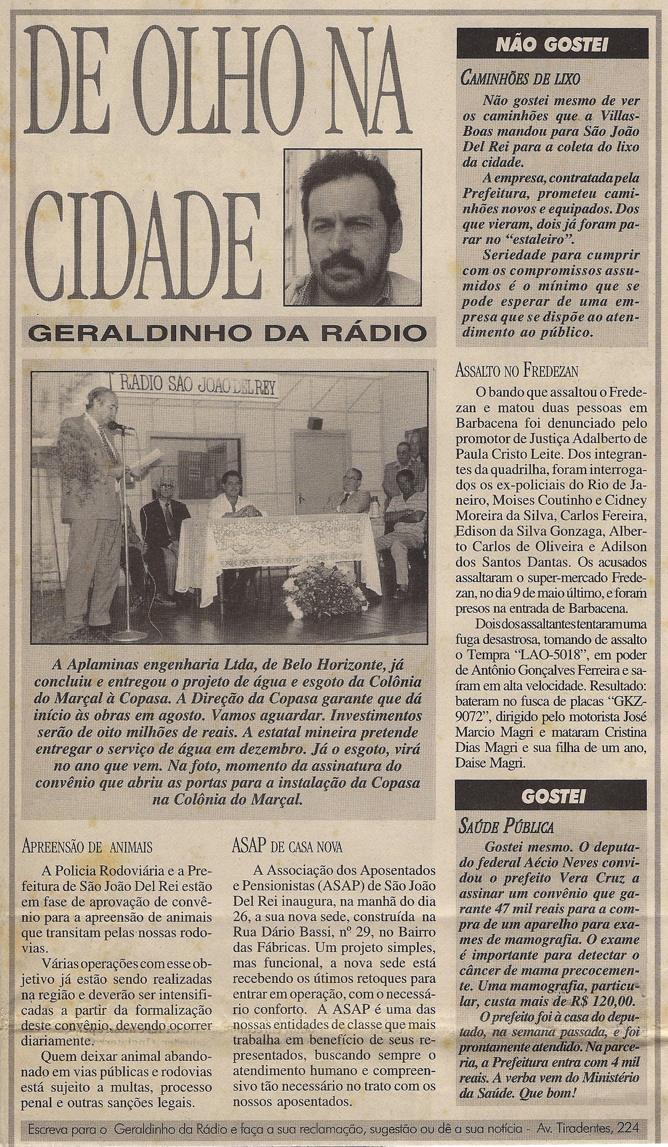 Não se tratava de botox jornalístico para esconder as imperfeições que vinham de fora e sacudiam o município por dentro. Era a injeção de uma nova perspectiva quando, como agravante, o Plano Real começou a ruir.