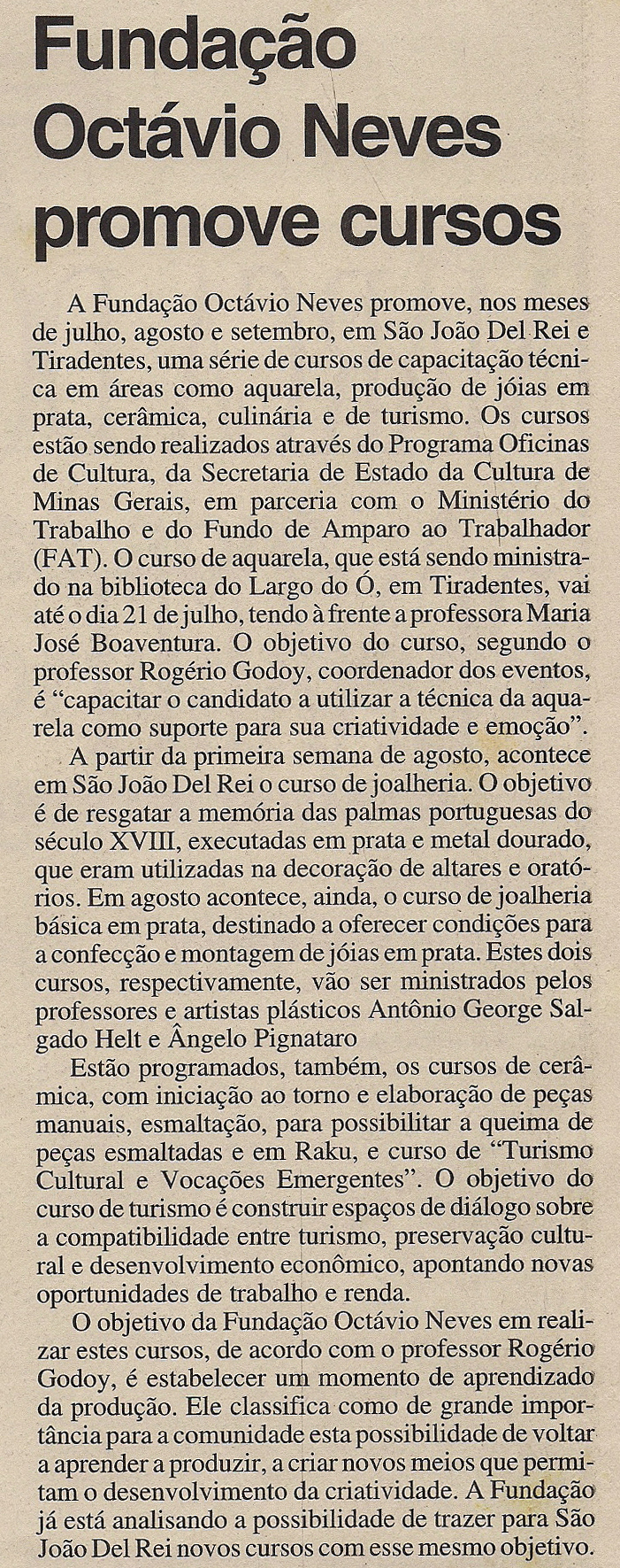 Fonte: Gazeta de São João del-Rei . 14/07/2012