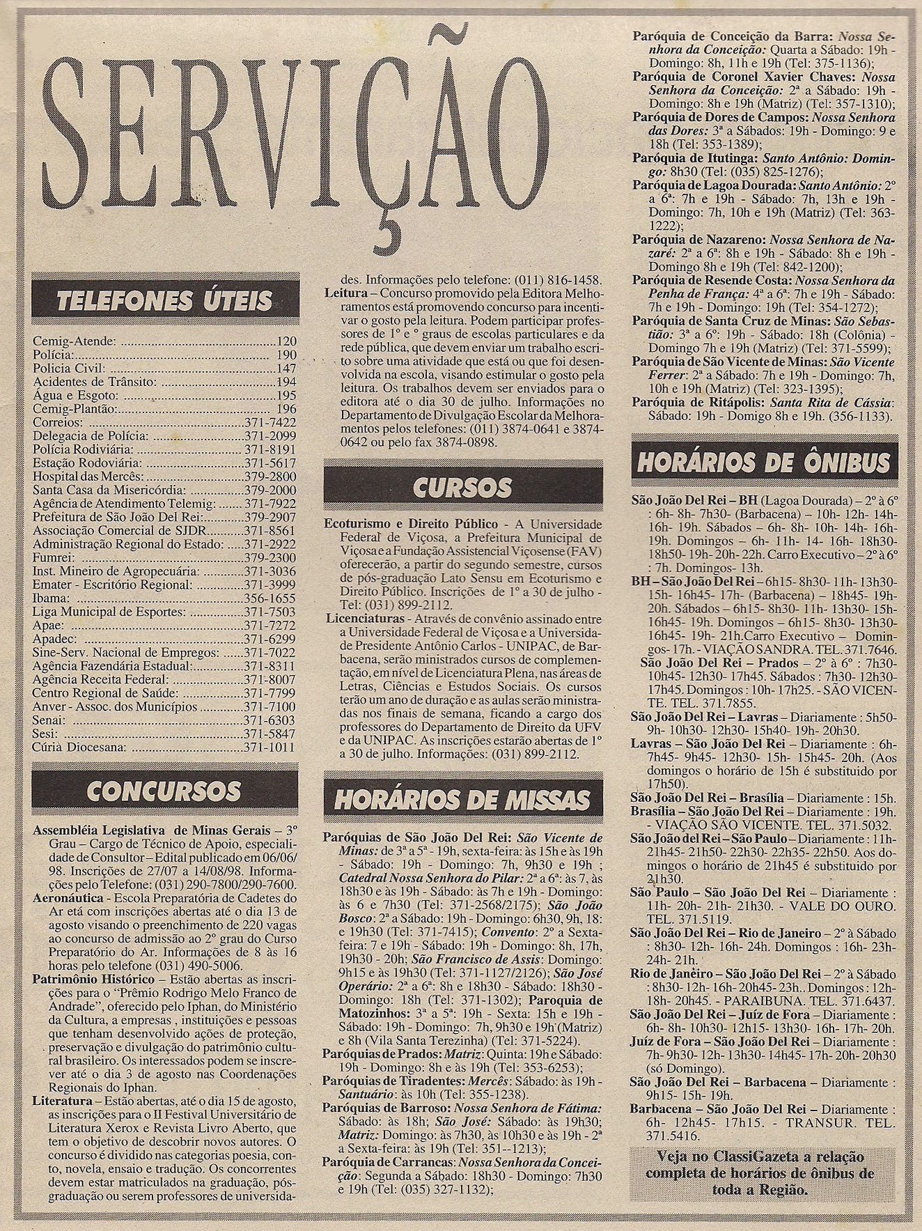 Gazeta de São João del-Rei . Número 1 . 18/07/1998