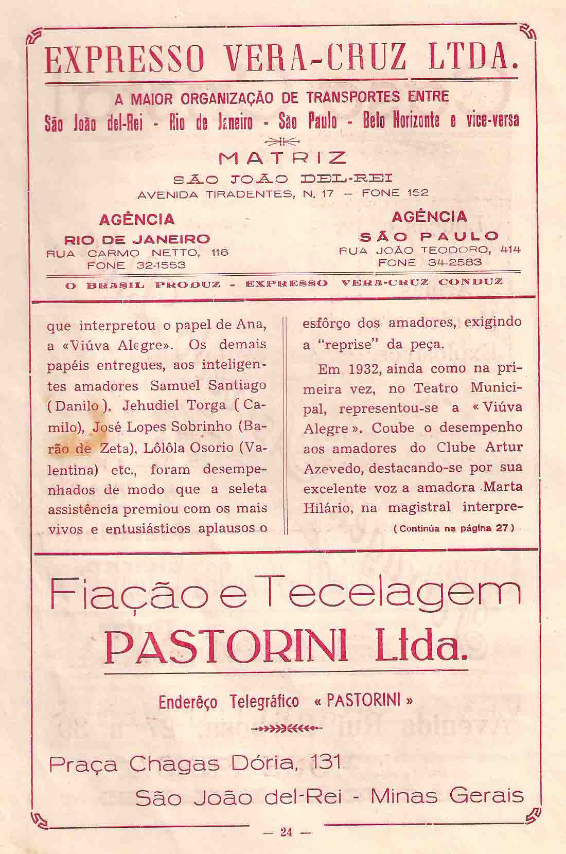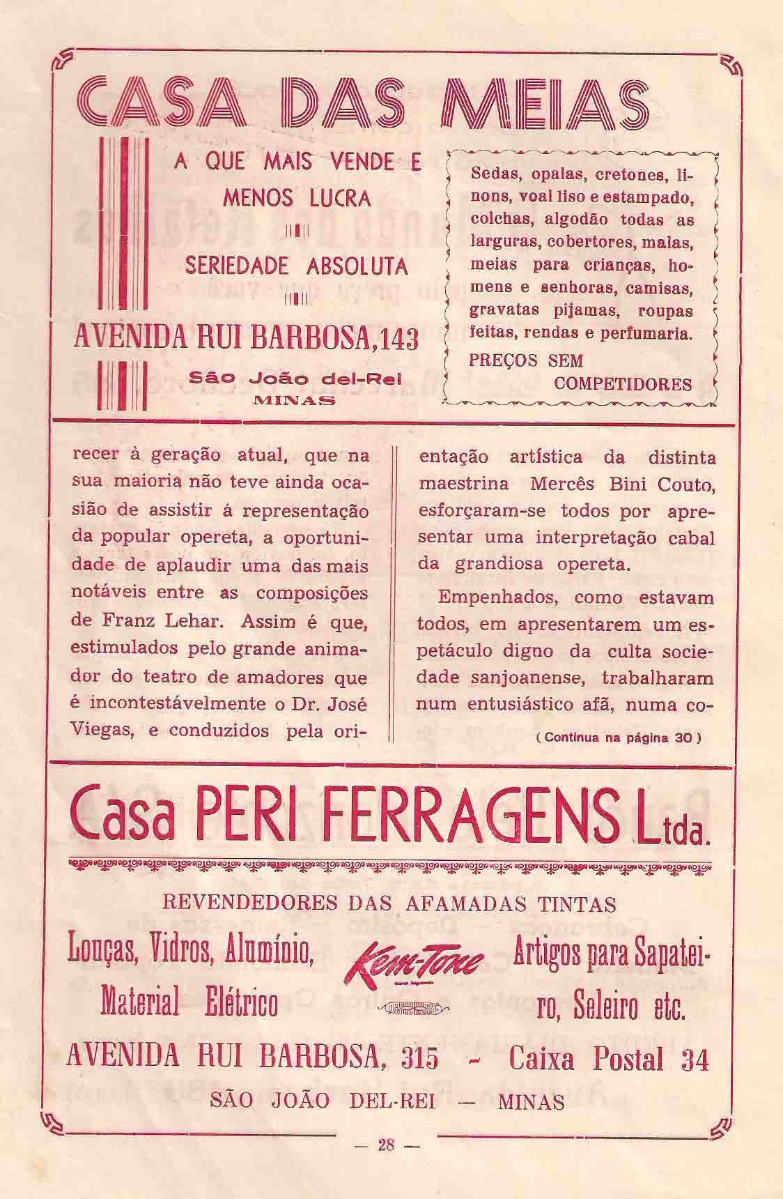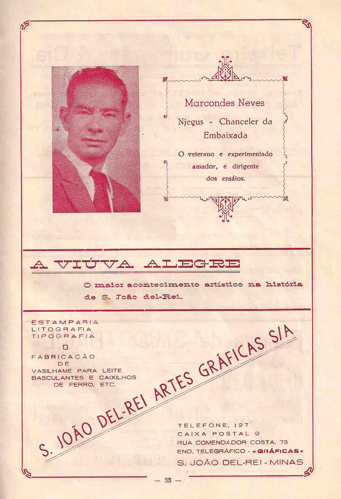 Operetas de São João del-Rei . A viúva Alegre . 1956